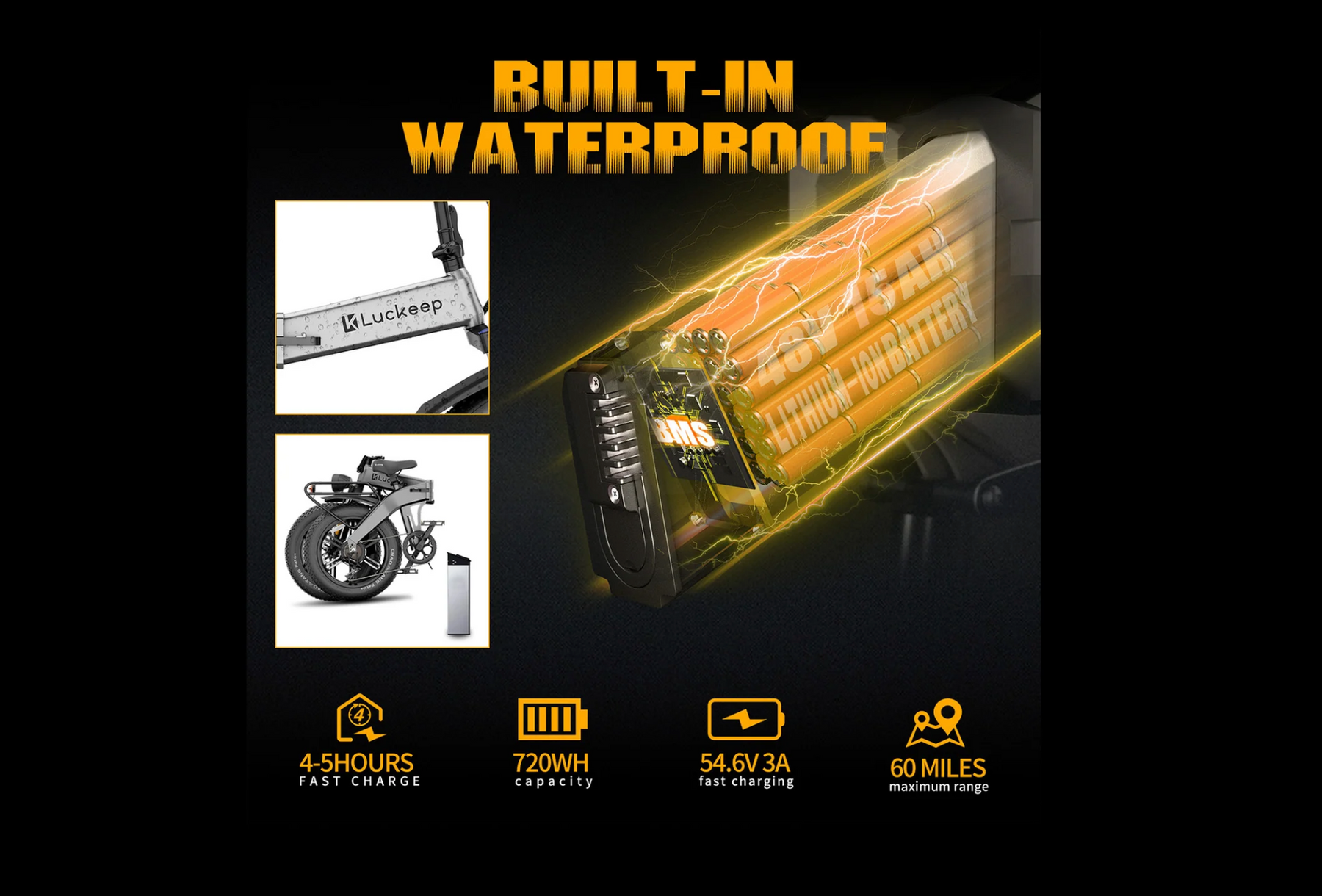 The X1 ebike features a Safety Certified BatteryΒ (UL2849 Standard)Β with a capacity of 720Wh. It only takes 4 hours to fully charge the battery