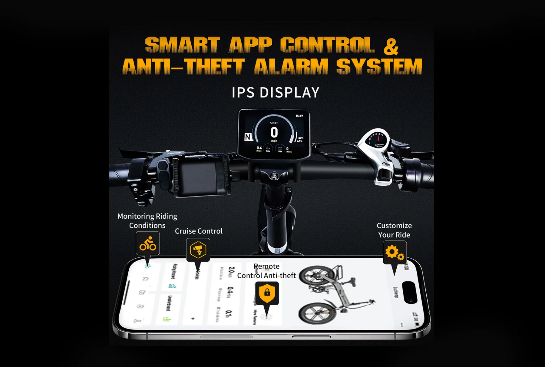 Track your battery life, distance traveled, pedal assist level, and more at a quick glance with the IPS Display. Charge your smartphone via its concealed USB