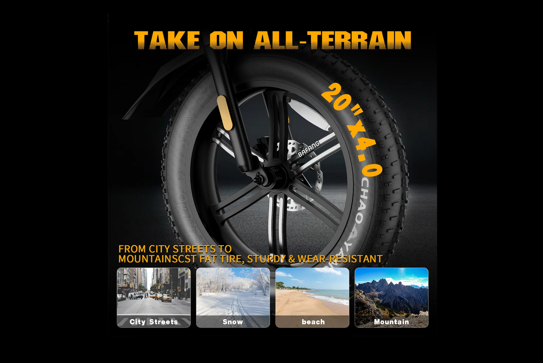 With 20-inch x 4-inch fat tires, sturdy frame design, and adjustable front suspension fork, it's like a reassuring cruiser that allows you to navigate any terrain with ease.